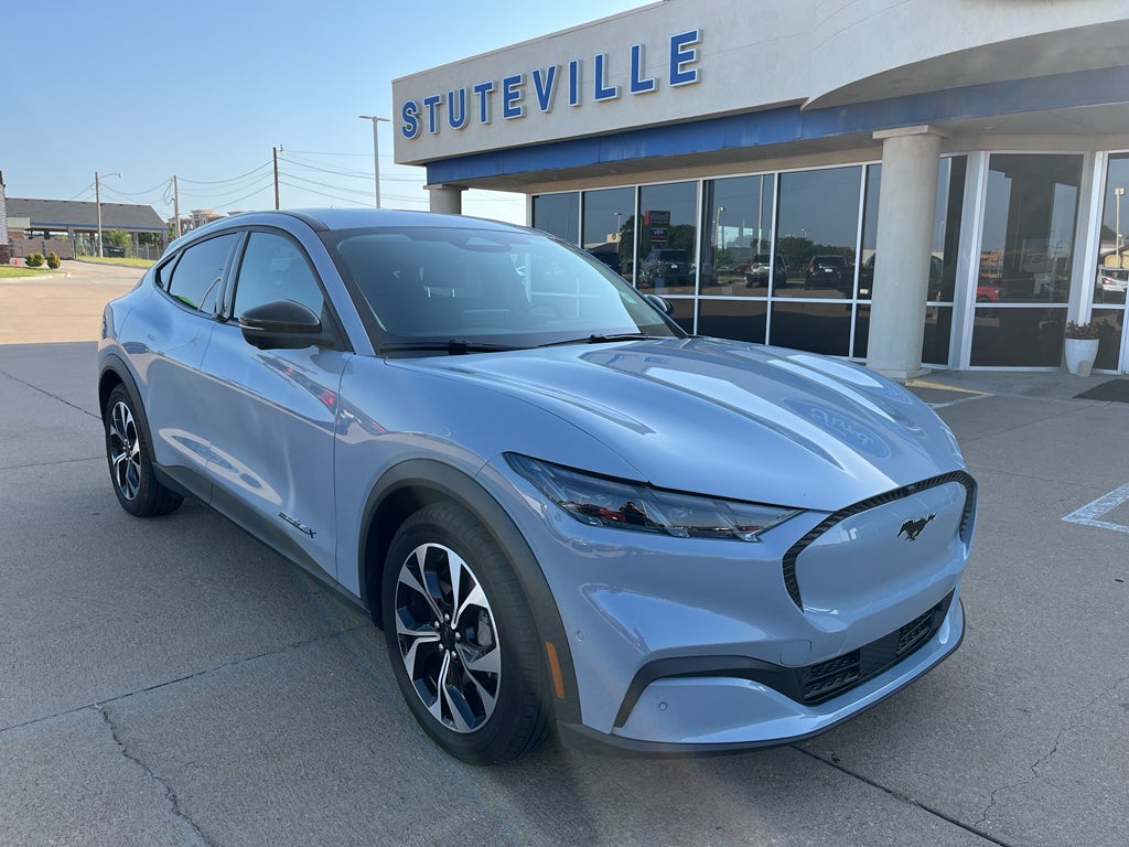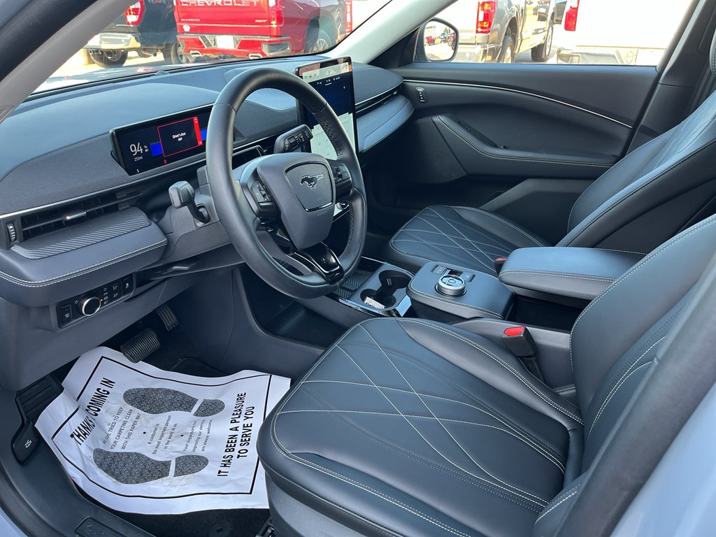 The leather seats in this Ford Mustang Mach-E are a must for buyers looking for comfort, durability, and style. The installed navigation system will keep you on the right path. See what's behind you with the back up camera on the Ford Mustang Mach-E. The Ford Mustang Mach-E offers Apple CarPlay for seamless connectivity. This Ford Mustang Mach-E has auto-adjust speed for safe following. This vehicle features a hands-free Bluetooth® phone system. This model offers Android Auto for seamless smartphone integration. Keep your hands warm all winter with a heated steering wheel in this unit . This 1/2 ton suv emanates grace with its stylish gray exterior. Conquer any rainy, snowy, or icy road conditions this winter with the all wheel drive system on this 1/2 ton suv. Set the temperature exactly where you are most comfortable in the Ford Mustang Mach-E. The fan speed and temperature will automatically adjust to maintain your preferred zone climate.