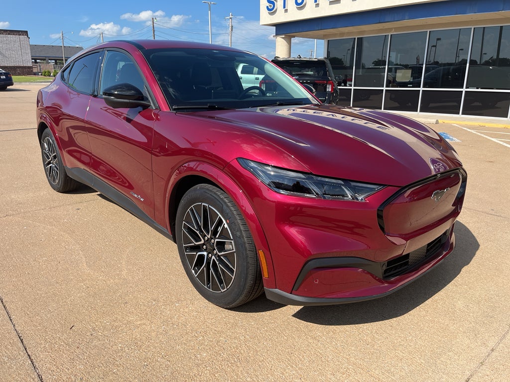 This 2025 Ford Mustang Mach-E has auto-adjust speed for safe following. It offers Android Auto for seamless smartphone integration. Bluetooth® technology is built into this 2025 Ford Mustang Mach-E , keeping your hands on the steering wheel and your focus on the road. The installed navigation system will keep you on the right path. See what's behind you with the back up camera on this Ford Mustang Mach-E. The leather seats in this 2025 Ford Mustang Mach-E are a must for buyers looking for comfort, durability, and style. This model is pure luxury with a heated steering wheel. It offers Apple CarPlay for seamless connectivity. The Ford Mustang Mach-E is rear wheel drive. Enjoy the convenience of the power liftgate on this vehicle. This vehicle gleams with a flashy red exterior. This vehicle has a Electric Motor high output engine. Maintaining a stable interior temperature in this vehicle is easy with the climate control system.