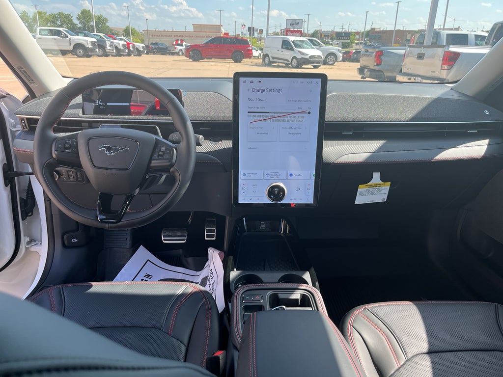 It features a hands-free Bluetooth® phone system. The vehicle is pure luxury with a heated steering wheel. The installed navigation system will keep you on the right path. The vehicle comes equipped with Android Auto for seamless smartphone integration on the road. The leather seats in the Ford Mustang Mach-E are a must for buyers looking for comfort, durability, and style. The vehicle offers Apple CarPlay for seamless connectivity. This vehicle has auto-adjust speed for safe following. Protect this model from unwanted accidents with a cutting edge backup camera system. The Ford Mustang Mach-E shines with clean polished lines coated with an elegant white finish. Conquer any rainy, snowy, or icy road conditions this winter with the all wheel drive system on this model. Load groceries and much more with ease into this model thanks to the power liftgate. This unit has a Electric Motor high output engine. Maintaining a stable interior temperature in this vehicle is easy with the climate control system.